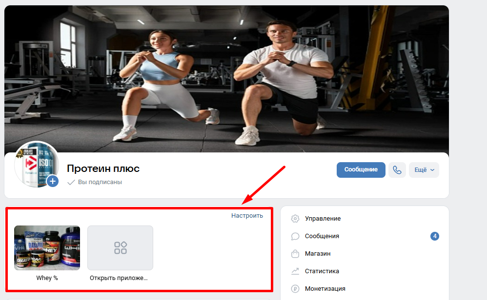 - Доступ к внутренним страницам. Повышает посещаемость целевых разделов сообщества, например «Товары», «Статьи», «Обсуждения».