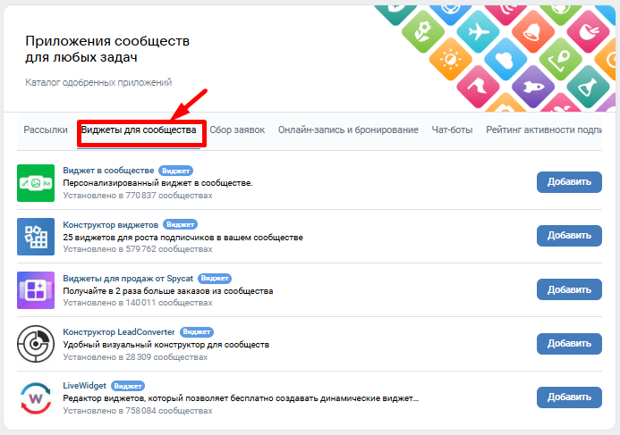 - Как добавить виджет в сообщество ВК с помощью приложений